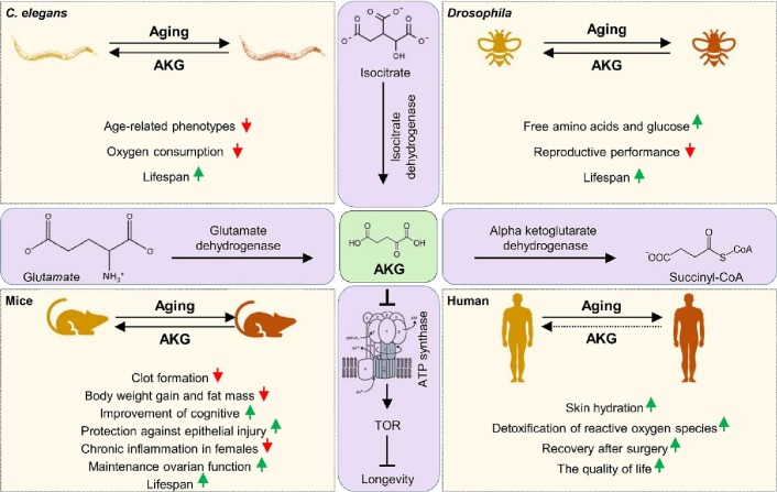 Een van de aandachtspunten van het onderzoek van AKG is de invloed ervan op de levensduur en de kwaliteit van de gezondheid. Het onderzoek naar Drosophila (fruitvliegen) door Aging-US merkte op dat "AKG-suppletie de levensduur verlengt door de mTOR-route te remmen en AMPK te activeren". Deze belangrijke bevinding onderstreept de rol van AKG bij het moduleren van belangrijke levensduurroutes, wat wijst op een universeel mechanisme dat ook mensen ten goede zou kunnen komen.